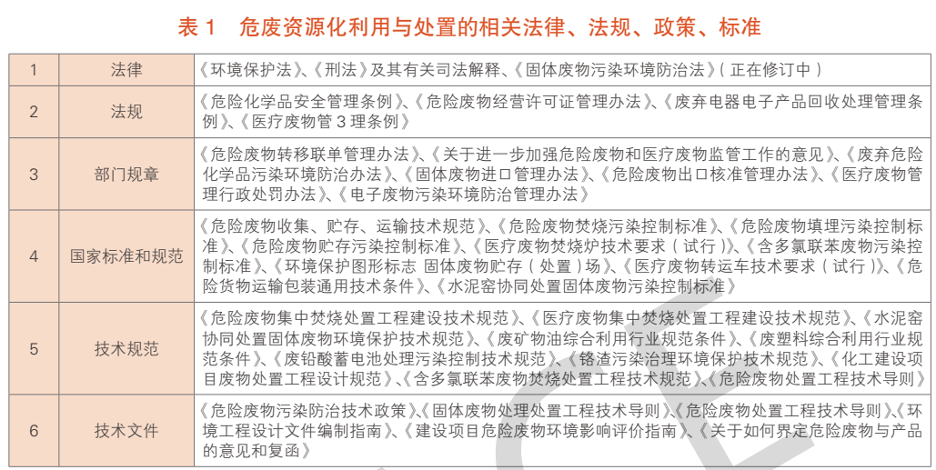 危廢資源化利用與處置相關的法律、法規(guī)、政策、標準