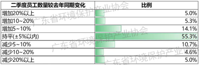 表6 環(huán)保企業(yè)二季度員工數(shù)量同期變化情況