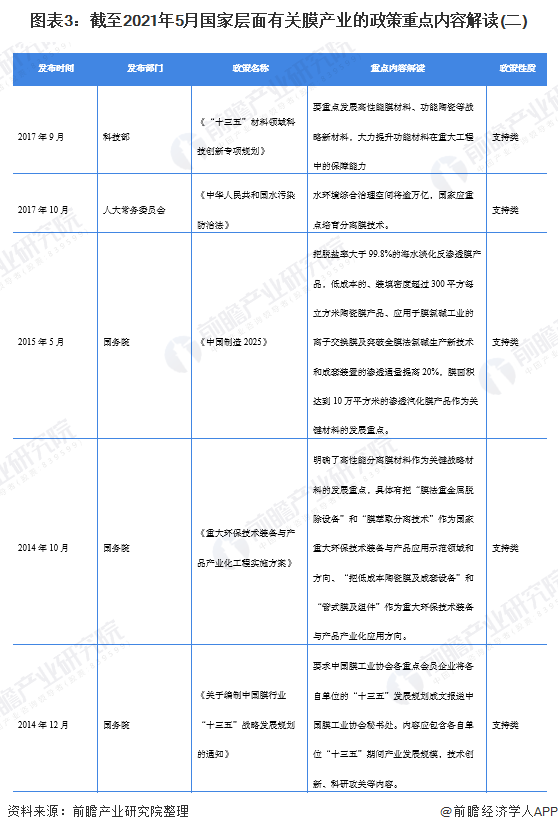 圖表3:截至2021年5月國(guó)家層面有關(guān)膜產(chǎn)業(yè)的政策重點(diǎn)內(nèi)容解讀(二)
