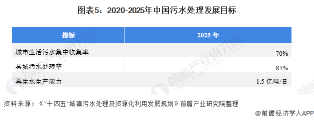 圖表5:2020-2025年中國(guó)污水處理發(fā)展目標(biāo)