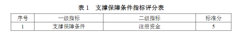 支撐保障條件指標包括環(huán)境咨詢(環(huán)保管家)服務(wù)單位的注冊資金、上年度營業(yè)收入、員工數(shù)量、職稱、質(zhì)量管理體系以及業(yè)務(wù)培訓(xùn)6項二級指標。支撐保障條件指標評分見表1。