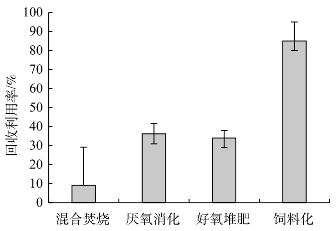 1. 廚余垃圾飼料化具有最高的回收利用率和顯著的碳減排效應(yīng);厭氧消化回收利用率較高,碳減排效應(yīng)最大;好氧堆肥的回收利用率與厭氧消化相當(dāng),但溫室氣體泄露會(huì)導(dǎo)致較高的碳排放;混合焚燒可以避免溫室氣體泄漏,但余熱發(fā)電的回收利用率較低,基本無(wú)碳減排效應(yīng)。