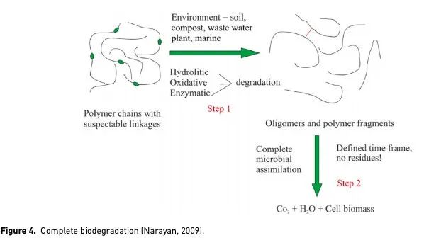 其理由是,人們腦子中的 “降解” 概念是在來源于對自然的觀察,例如木材等有機體可以被自然存在的微生物完全降解,成為其他機體的營養(yǎng),形成物質(zhì)閉環(huán),而目前 “可生物降解” 塑料等人造的聚合物,都是聚酯類高分子,需要特定的水解條件進行第一步化學降解,然后才有可能被微生物消化。