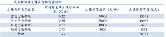 我國土壤污染類型包括農(nóng)業(yè)耕地土壤污染、城市工業(yè)用地土壤污染以及礦區(qū)土壤污染。目前,我國待修復(fù)的污染場(chǎng)地?cái)?shù)量非常之多,保守估計(jì)超過50萬塊。其中,耕地土壤修復(fù)投資需求在3萬億以上,城市土壤修復(fù)投資需求1萬億以上,礦區(qū)土壤修復(fù)投資需求可達(dá)近2萬億。(備注:由于修復(fù)分為輕重緩急,分階段進(jìn)行,而且受到資金的制約,所以預(yù)測(cè)的投資需求,和真正會(huì)去修復(fù)的地塊,不是同一個(gè)概念)
