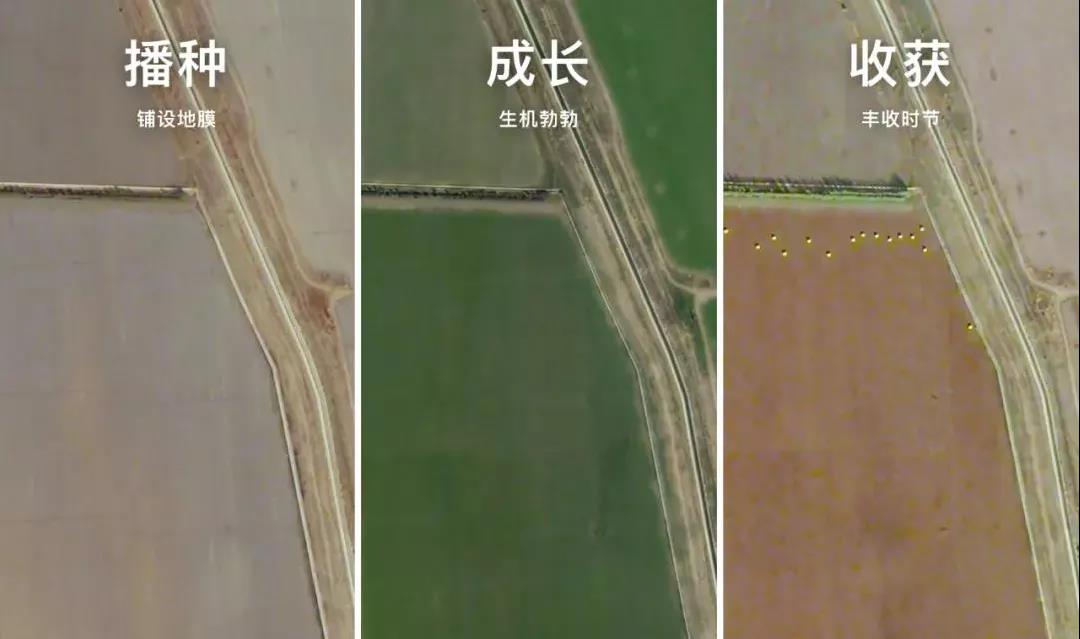 衛(wèi)星視角記錄下新疆棉田從棉花播種、成長(zhǎng),再到收獲各個(gè)時(shí)期的狀態(tài)。