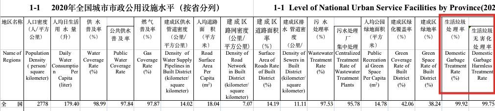 村鎮(zhèn)環(huán)衛(wèi)歷史上幾乎是空白,近年來通過城鄉(xiāng)環(huán)衛(wèi)一體化建設(shè)、農(nóng)村廁改,方使村鎮(zhèn)初步有了市容環(huán)衛(wèi)管理體系。從《年鑒》數(shù)據(jù)來看,村鎮(zhèn)環(huán)衛(wèi)發(fā)展雖然面臨種種難題,但依舊取得了巨大的進(jìn)展。二、幾個(gè)比較有趣的數(shù)據(jù)和排名這兩個(gè)數(shù)字經(jīng)常是混淆在一起的,但在《年鑒》中,這是不同的統(tǒng)計(jì)數(shù)據(jù)。2020年,全國(guó)城市生活垃圾處理率為99.92%,全國(guó)城市生活垃圾無(wú)害化處理率為99.75%,這意味著全國(guó)仍有0.25%的生活垃圾未得到無(wú)害化處理,按2020年全國(guó)城市生活垃圾清運(yùn)量計(jì)算,大約有58.78萬(wàn)噸生活垃圾未能無(wú)害化處理,如果直接用表1中的垃圾無(wú)害化處理量和垃圾清運(yùn)量相減,則可以到60萬(wàn)噸這個(gè)整數(shù),大致相當(dāng)。