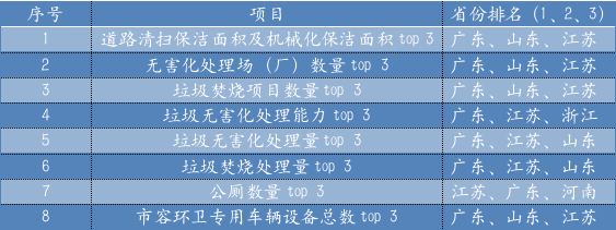 2、2020年環(huán)衛(wèi)設(shè)施投資大提速2020年市容環(huán)衛(wèi)和垃圾處理基礎(chǔ)設(shè)施固定資產(chǎn)投資1568.4億元,其中市容環(huán)衛(wèi)投資862.6億元,垃圾處理設(shè)施投資705.8億元,這兩個(gè)數(shù)字較2019年增長(zhǎng)了54.75%和73.50%,目測(cè)是10年來增速最快的一年。環(huán)衛(wèi)真的是朝陽(yáng)產(chǎn)業(yè)??!3、有的省在環(huán)衛(wèi)和垃圾處理固定資產(chǎn)投資為0上文提到固定資產(chǎn)投資,全國(guó)花了1568個(gè)億,但也有個(gè)別省份交了白卷,例如西藏,在這兩方面的投資均為0,而青海,雖然在市容環(huán)衛(wèi)設(shè)施方面花了1個(gè)多億,但垃圾處理基礎(chǔ)設(shè)施投資也是0.有0就有top 5,2020年,在市容環(huán)衛(wèi)設(shè)施方面投資最大的省份是:廣東(102.2億)、江蘇(93.5億)、浙江(61.4億)、河南(59.4億)、河北(57.1億),垃圾處理設(shè)施建設(shè)方面投資最大的省份是:廣東(97.3億)、江蘇(84.6億)、浙江(53.8億)、河北(49.7億)、河南(48.3億)。是的,你沒看錯(cuò),前三沒有變化,只有第四和第五位是河南、河北在移形換位。如果沒有特殊情況,未來幾年內(nèi),這五個(gè)省的環(huán)衛(wèi)和垃圾處理設(shè)施投資會(huì)繼續(xù)名列前茅,相關(guān)企業(yè)需要重視了!4、全國(guó)市容環(huán)衛(wèi)實(shí)力哪家強(qiáng)?表5 全國(guó)市容環(huán)衛(wèi)行業(yè)主要指標(biāo)排名前三位省份