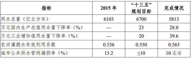 我國(guó)在“十三五”節(jié)水型社會(huì)建設(shè)主要目標(biāo)指標(biāo)完成情況,見(jiàn)下圖: