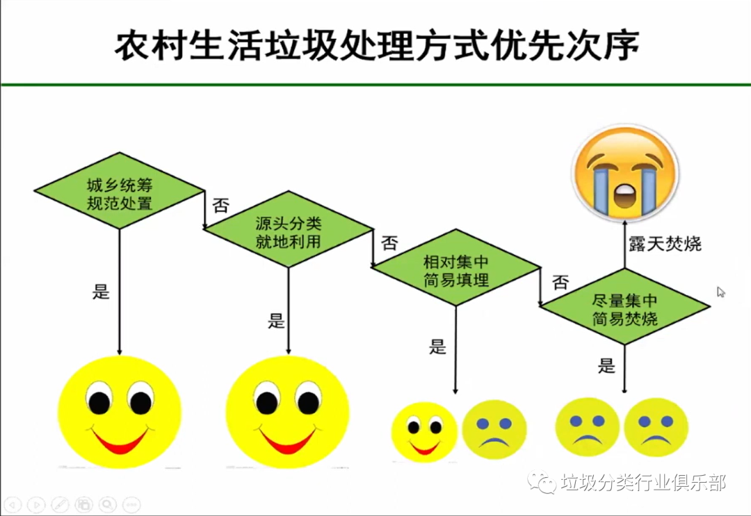如何讓農(nóng)村垃圾分類在短時間得到改善?劉教授按優(yōu)先次序介紹了農(nóng)村生活垃圾處理方式:優(yōu)先考慮城鄉(xiāng)統(tǒng)籌、規(guī)范處置;如果有的地方達不到條件可以選擇源頭分類、就地利用,形成一個利用體系。若實在不行就選擇相對集中簡易填埋,但簡易焚燒特別是露天焚燒是不提倡的,它對環(huán)境的危害性太大。