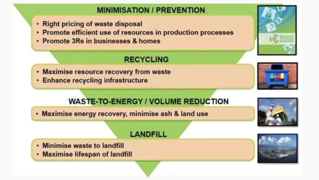 據(jù)統(tǒng)計,新加坡不能回收的垃圾中,有41%會被運去焚化,焚化后的灰燼和不能焚化的垃圾,才會運去遠離本島的新加坡“垃圾島”填埋,達到廢物利用的最大化收益。(據(jù)說焚化過程的能量轉換能滿足全島3%的電力需求)新加坡綜合固體垃圾管理系統(tǒng)主要從兩方面著力:減少垃圾的產(chǎn)生和廢物回收。新加坡國家環(huán)境局的網(wǎng)站顯示,新加坡以“零垃圾國家”為目標,從源頭上控制垃圾,并努力實現(xiàn)垃圾的重復利用和回收,給予垃圾第二次生命。從源頭控制垃圾方面,最有名的就是一項由新加坡政府、工業(yè)企業(yè)和非政府組織聯(lián)合發(fā)起簽署的“自愿包裝協(xié)議”,包裝垃圾大約占到了新加坡生活垃圾重點的1/3,協(xié)議的目的是通過重新設計包裝和再循環(huán),減少產(chǎn)品包裝垃圾。根據(jù)協(xié)議,簽署協(xié)議的公司,包括產(chǎn)品制造商、零售商、批發(fā)商等,要自發(fā)制定減少包裝數(shù)量的標準。第一份協(xié)議于2007年簽署,5年有效期過后,多方機構又在2012年簽署了第二份協(xié)議。截至2017年,受益于協(xié)議的簽署,全國共減少了39000t包裝垃圾,節(jié)約了9300萬新加坡元(約合3.7億元)的支出。新加坡國家環(huán)境局不斷推廣社區(qū)和工業(yè)廢物循環(huán)利用,在生活區(qū)域內置放分類垃圾桶,把可以回收再利用地廢品進行分類。對那些明顯可以分類地廢舊品(如報紙、飲料罐等),每個居民樓下都設置有專門的分類垃圾桶,用戶可以把這些東西按照類別投放到不同的桶內,然后專業(yè)公司回收處理。私人翻撿垃圾桶屬于違法行為。