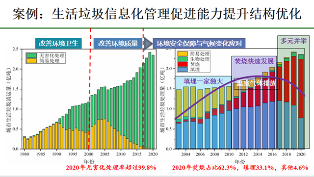 劉建國提到,我國城市垃圾治理從過去簡單處理來改善環(huán)境衛(wèi)生到改善環(huán)境質(zhì)量再到環(huán)境安全保障與氣候變化應(yīng)對的新階段。2020年無害化處理率超過99.8%,但這不是說相當(dāng)于100分考了99.8分,而是100個人當(dāng)中有99.8個人超過了60分,其實還有很大進(jìn)步空間。2020年,城市生活垃圾焚燒占比62.3%,填埋33.1%,其他4.6%。垃圾無害化處理經(jīng)過了填埋一家獨大、焚燒快速發(fā)展到多元并舉的過程,整個處理系統(tǒng)的結(jié)構(gòu)在不斷優(yōu)化。
