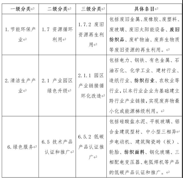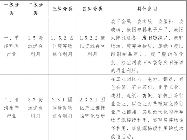 表 3《綠色產(chǎn)業(yè)指導(dǎo)目錄(2019年版)》紡織行業(yè)相關(guān)條目