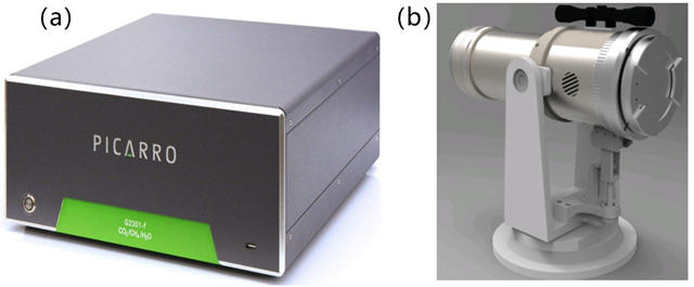 圖2.(a)原位點(diǎn)式CRDS監(jiān)測儀(b)區(qū)域開放式TDLAS監(jiān)測儀
