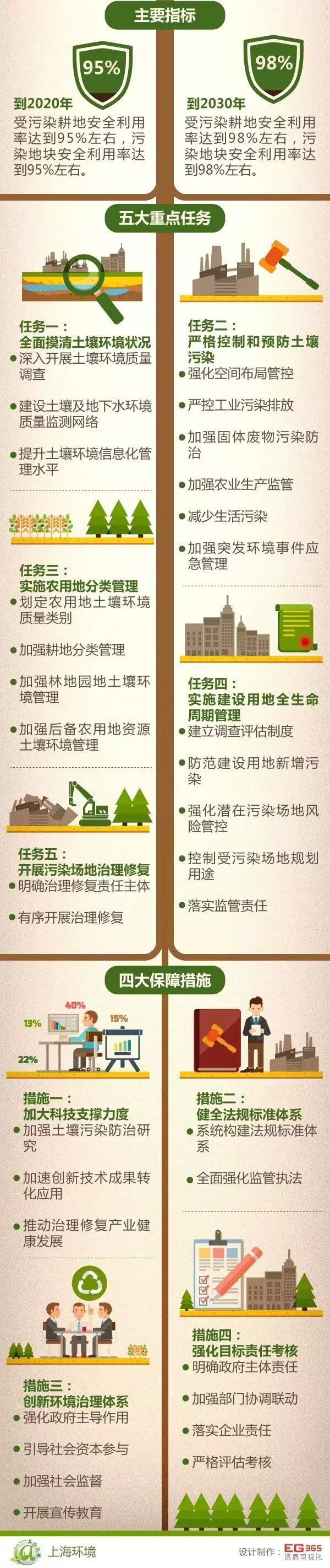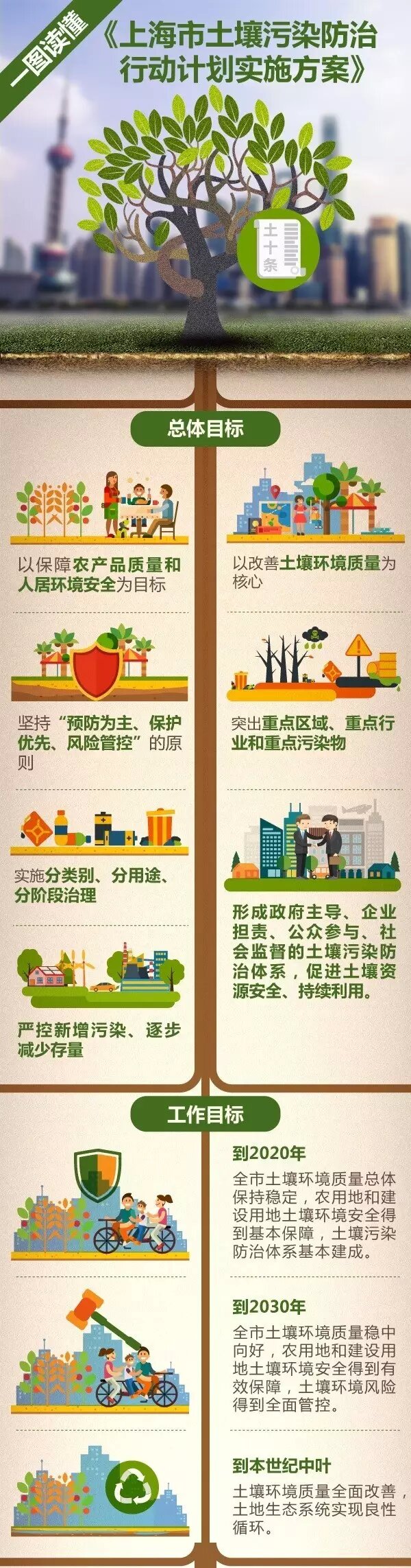 《實(shí)施方案》堅(jiān)持預(yù)防為主、保護(hù)優(yōu)先、風(fēng)險(xiǎn)管控的原則,實(shí)施分類別、分用途、分階段治理,嚴(yán)控新增污染、逐步減少存量,形成政府主導(dǎo)、企業(yè)擔(dān)責(zé)、公眾參與、社會(huì)監(jiān)督的土壤污染防治體系,促進(jìn)土壤資源安全、持續(xù)利用,為上海實(shí)現(xiàn)“四個(gè)率先”,建成“四個(gè)中心”、具有全球影響力的科技創(chuàng)新中心和全球城市提供必要保障和有力支撐。