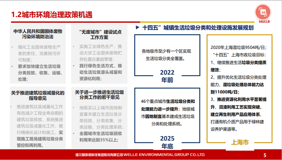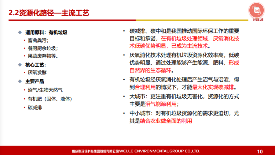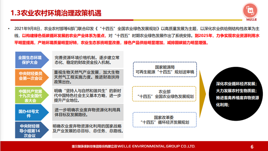 本文圍繞碳中和背景下的政策機(jī)遇、城鄉(xiāng)有機(jī)廢棄物資源化的的主要處理方法和路徑等內(nèi)容展開(kāi),同時(shí)對(duì)維爾利集團(tuán)概況和發(fā)展歷程做了簡(jiǎn)要回顧。 2021年10月20-21日,2021年中國(guó)沼氣學(xué)會(huì)學(xué)術(shù)年會(huì)暨中德沼氣合作論壇在南京舉行。作為2021年中國(guó)沼氣學(xué)會(huì)學(xué)術(shù)年會(huì)的承辦單位,維爾利環(huán)??萍技瘓F(tuán)股份有限公司董事長(zhǎng)李月中博士以《城鄉(xiāng)有機(jī)廢棄物資源化路徑探討》為主題,與大家一起探討了碳中和背景下城鄉(xiāng)有機(jī)廢棄物資源化的發(fā)展與未來(lái)。報(bào)告圍繞碳中和背景下的政策機(jī)遇、城鄉(xiāng)有機(jī)廢棄物資源化的的主要處理方法和路徑等內(nèi)容展開(kāi),同時(shí)對(duì)維爾利集團(tuán)概況和發(fā)展歷程做了簡(jiǎn)要回顧。本文根據(jù)其發(fā)言整理。▼維爾利環(huán)??萍技瘓F(tuán)股份有限公司董事長(zhǎng) 李月中各位領(lǐng)導(dǎo)、各位專(zhuān)家、各位同仁,大家上午好!今天有幸代表維爾利集團(tuán)和大家做交流,作為會(huì)議的承辦方,也感謝中國(guó)沼氣學(xué)會(huì)、南京大學(xué)、德國(guó)沼氣協(xié)會(huì)給維爾利這個(gè)機(jī)會(huì)。維爾利作為專(zhuān)業(yè)的企業(yè),實(shí)際上歷史并不是很長(zhǎng),但是我們對(duì)沼氣和厭氧技術(shù)這塊有自己的獨(dú)到見(jiàn)解。作為一個(gè)商業(yè)機(jī)構(gòu),企業(yè)怎么能夠在競(jìng)爭(zhēng)行業(yè)里生存和發(fā)展?在這里和大家做一些交流,和大家一起思考,同時(shí)希望在座的同仁能夠在這個(gè)行業(yè)相對(duì)比較困難的情況下抱團(tuán)取暖。2020年9月,國(guó)家主席習(xí)近平在聯(lián)合國(guó)大會(huì)上提出“二氧化碳排放力爭(zhēng)于2030年前達(dá)到峰值,努力爭(zhēng)取2060年前實(shí)現(xiàn)碳中和”。2021年3月15日,習(xí)近平總書(shū)記主持召開(kāi)中央財(cái)經(jīng)委員會(huì)第九次會(huì)議并發(fā)表重要講話強(qiáng)調(diào),要把碳達(dá)峰、碳中和納入生態(tài)文明建設(shè)整體布局,拿出抓鐵有痕的勁頭,如期實(shí)現(xiàn)2030年前碳達(dá)峰、2060年前碳中和的目標(biāo)。從能源結(jié)構(gòu)上來(lái)說(shuō),有機(jī)垃圾資源化產(chǎn)生的生物質(zhì)能源在實(shí)現(xiàn)雙碳目標(biāo)上具有獨(dú)特意義。這實(shí)際上也是倒推企業(yè)行業(yè)轉(zhuǎn)型。對(duì)大家來(lái)說(shuō),“碳達(dá)峰碳中和”既是一個(gè)挑戰(zhàn)也是一個(gè)機(jī)會(huì)。這里面包括了現(xiàn)在我們推出的對(duì)城市環(huán)境,對(duì)農(nóng)村農(nóng)業(yè)環(huán)境可能存在的機(jī)會(huì),這些機(jī)會(huì)對(duì)環(huán)保產(chǎn)業(yè)來(lái)說(shuō),個(gè)人認(rèn)為受到政策影響比較大。為什么德國(guó)2016年在農(nóng)業(yè)生物天然氣領(lǐng)域有下滑?是因?yàn)槟承┱叱霈F(xiàn)了不到位的情況,一些企業(yè)就不愿意去做。在碳達(dá)峰、碳減排的前提下,我們有很多的機(jī)會(huì),但這個(gè)機(jī)會(huì)要真正落實(shí),還是要國(guó)家從頂層設(shè)計(jì)到具體的政策到位,才能夠使這個(gè)行業(yè)有比較好的發(fā)展。在城市環(huán)境治理領(lǐng)域,城市有機(jī)廢棄物(垃圾量)非常大。上海實(shí)施垃圾分類(lèi)以后,2020年上海濕垃圾的產(chǎn)生量是每天在9500-10000噸左右,也就是說(shuō)1/3為濕垃圾。這對(duì)焚燒廠來(lái)說(shuō),是一個(gè)巨大的減負(fù),但同時(shí)對(duì)處理能力也有了條件限制。我們深度參與了這方面工作,現(xiàn)在上海的處理能力大概為4000噸左右,意味著上海的濕垃圾處理能力還有60%在建,徹底實(shí)現(xiàn)垃圾分類(lèi)的路還很遠(yuǎn)。北京情況更為嚴(yán)重。原來(lái)北京只有幾個(gè)堆肥廠,原來(lái)只是三相做一點(diǎn)小的堆肥,如果真的要實(shí)現(xiàn)垃圾源頭分類(lèi),大概4、5千噸的垃圾處理設(shè)施要重新建設(shè)。在農(nóng)業(yè)農(nóng)村環(huán)境治理領(lǐng)域,包括農(nóng)產(chǎn)品加工這方面,整個(gè)市場(chǎng)規(guī)??赡芨蟆8魑磺拜叾家呀?jīng)做了一些介紹,我們是不是能夠全部實(shí)現(xiàn)資源化處理,是值得商榷的。對(duì)于不同的原料,我們應(yīng)該怎么處理?作為企業(yè),我們推行起來(lái)還是有一定的難度。我們現(xiàn)在的這些大型的沼氣項(xiàng)目,它的源頭、原料、收益、收益成本,包括最終的產(chǎn)品出路,收集半徑到底多少是最合理的?實(shí)際上是需要根據(jù)不同有機(jī)廢棄物的種類(lèi)以及最終產(chǎn)品的出路來(lái)規(guī)劃項(xiàng)目規(guī)模,而不是按照政策要求。比如一萬(wàn)方的沼氣工程才稱(chēng)得上大型沼氣項(xiàng)目,才有補(bǔ)貼,這樣的項(xiàng)目就不一定能夠真正地實(shí)現(xiàn)盈利。 下面大概講一講我們最近對(duì)城鄉(xiāng)有機(jī)廢棄物資源化的主要處理方法和路徑。