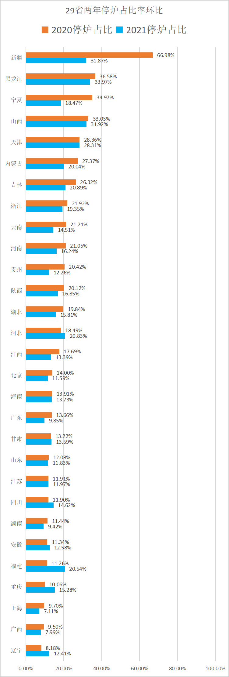 文末附贈29省停爐占比兩年對比統(tǒng)計圖