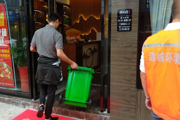 在試運行階段,港城環(huán)境環(huán)衛(wèi)工人會每天上門收取餐廚垃圾,并對餐廚垃圾計量,再根據(jù)當月餐廚垃圾收集的平均量,進一步擬定更為合理的價格補充協(xié)議書。