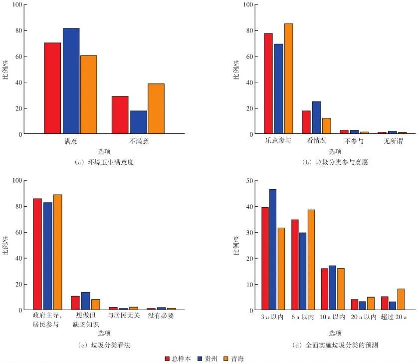 基于青海和貴州兩地的調(diào)查數(shù)據(jù)(共302份有效問卷),分析西部地區(qū)居民垃圾分類意愿及影響因素,發(fā)現(xiàn)環(huán)境衛(wèi)生滿意度為72%。78%的受訪者愿意參與分類,86%的受訪者支持“政府主導(dǎo),居民參與”,強(qiáng)制分類(72%)、濕垃圾破袋投放(68%)和定時(shí)定點(diǎn)投放(61%)3項(xiàng)措施的接受程度較高。分類不方便、設(shè)施不完善、宣傳力度不足、缺乏社會(huì)氛圍是阻礙居民垃圾分類的主要因素。建議構(gòu)建政府主導(dǎo)、多方參與的垃圾治理機(jī)制,提高垃圾桶配置率和覆蓋率,提高垃圾分類投放的便利性,采取針對(duì)性的宣傳策略,營造全民參與垃圾分類的社會(huì)氛圍。在采取多樣化的管理措施組合方式下,青海、貴州兩地分別側(cè)重加強(qiáng)強(qiáng)制型管理和引導(dǎo)型管理。