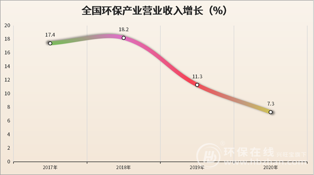 并且不可否認(rèn)的是,隨著“十三五”規(guī)劃目標(biāo)的圓滿完成,環(huán)保產(chǎn)業(yè)規(guī)模的增速確有波動。來自中國環(huán)保產(chǎn)業(yè)協(xié)會的《中國環(huán)保產(chǎn)業(yè)發(fā)展?fàn)顩r報告(2021)》顯示,2020年全國環(huán)保產(chǎn)業(yè)營業(yè)收入增長約為7.3%??梢詫Ρ纫幌?,增速放緩的信號還是比較明顯的。