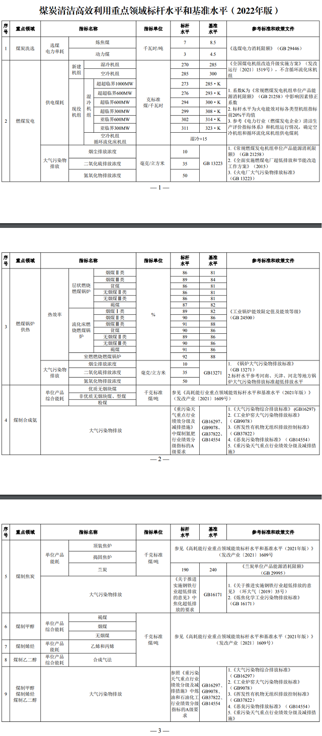 國家發(fā)展改革委等部門關(guān)于發(fā)布《煤炭清潔高效利用重點(diǎn)領(lǐng)域標(biāo)桿水平和基準(zhǔn)水平(2022年版)》的通知