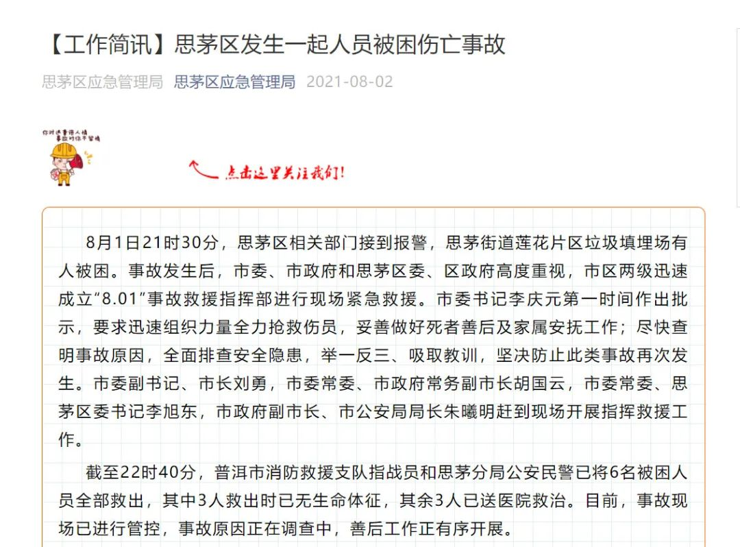 3、有限空間中毒窒息?云南普洱垃圾填埋場事故致5死1傷!環(huán)保圈,2021-08-09