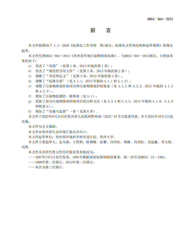 日前,經(jīng)貴州省人民政府同意,貴州省市場監(jiān)管局、貴州省生態(tài)環(huán)境廳聯(lián)合批準(zhǔn)發(fā)布《貴州省環(huán)境污染物排放標(biāo)準(zhǔn)》貴州省地方標(biāo)準(zhǔn),標(biāo)準(zhǔn)涉及大氣污染物、水污染物等。