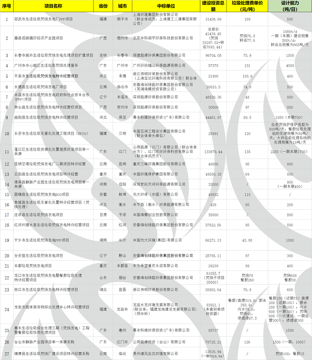 2022年上半年焚燒市場共計釋放27個生活垃圾焚燒項目,如有遺漏歡迎補充! (數(shù)據(jù)來源:中國固廢網(wǎng))