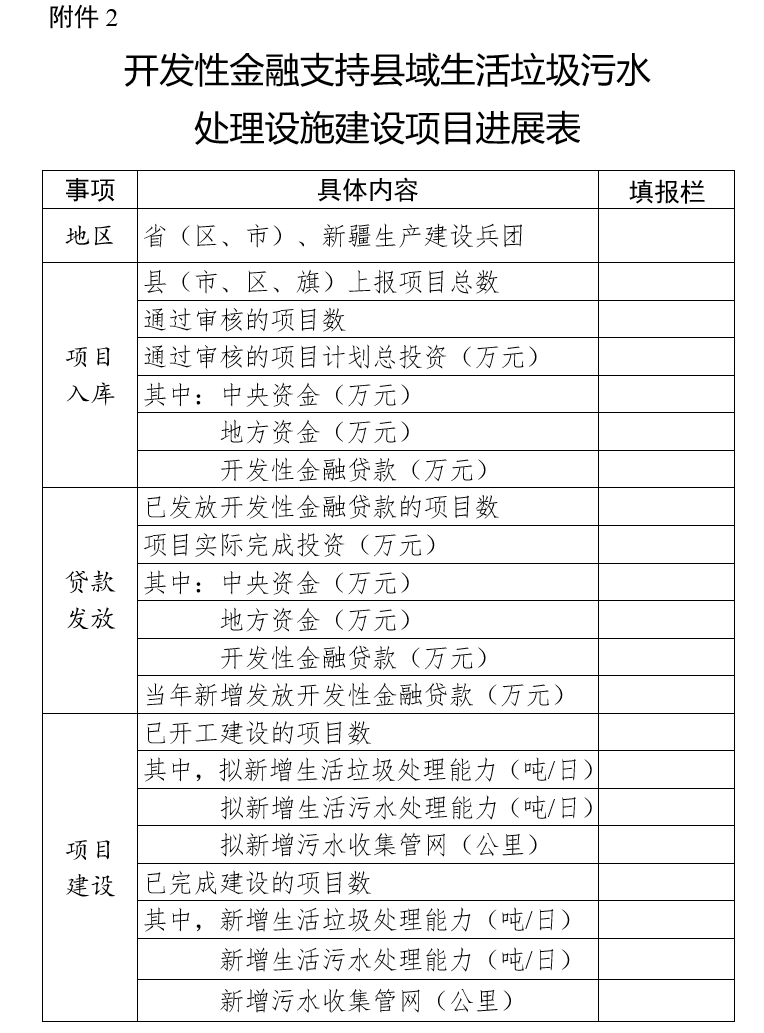 2.開發(fā)性金融支持縣域生活垃圾污水處理設施建設項目進展表