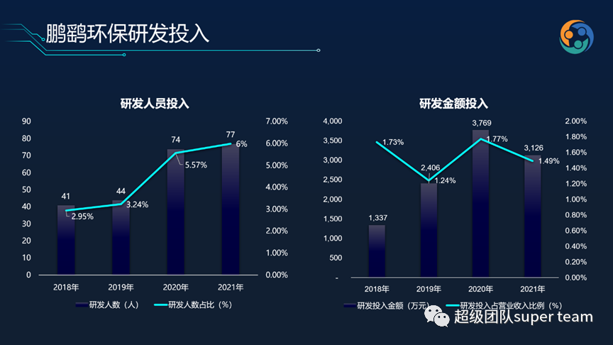 相比2019年,近兩年鵬鷂環(huán)保的研發(fā)費(fèi)用率有所攀升,2021年的研發(fā)投入為3100萬(wàn),研發(fā)費(fèi)用率約為1.5%。
