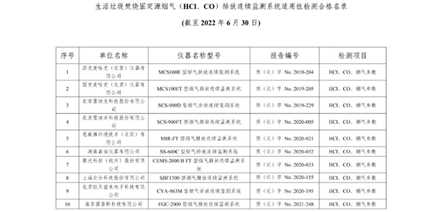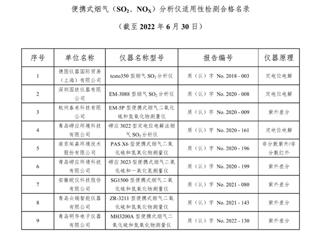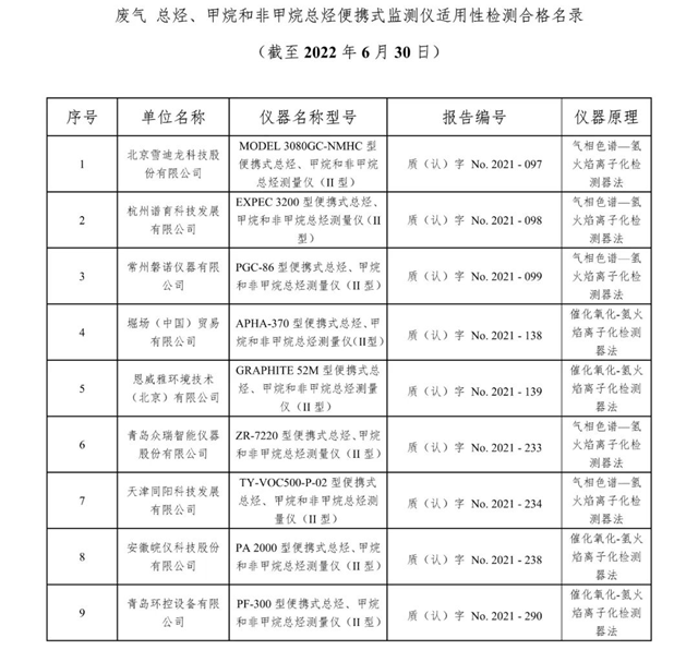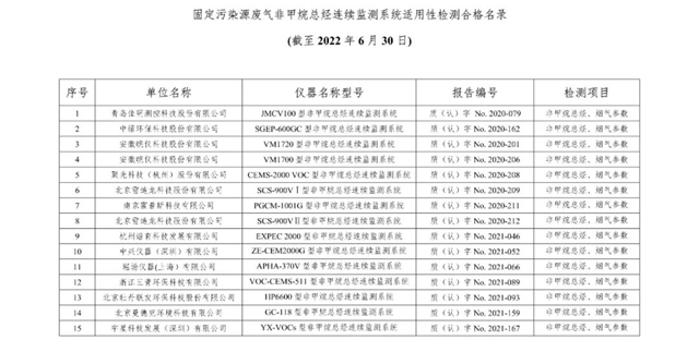 中國環(huán)境監(jiān)測總站發(fā)布廢氣類適用性檢測合格名錄(截至2022年6月30日)