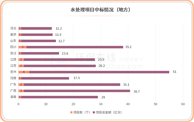 圖中也可以看出,水處理項目仍然是最多的類別,不過EOD項目以及生態(tài)環(huán)境綜合項目雖然數(shù)量少,但項目金額相當可觀。