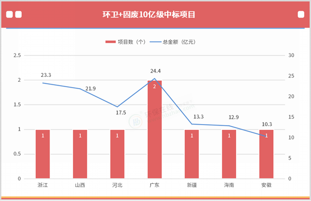 上半年,固廢和環(huán)衛(wèi)中標的10億級項目也有18.6%,總金額占比也超過了10%,算得上豐收了。而且,上榜的固廢項目并不再以垃圾焚燒為主,固廢資源化的發(fā)展勢頭還是向好的。