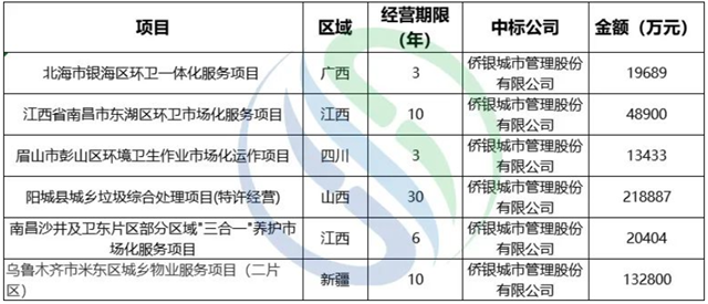 (僑銀股份上半年億級項目中標(biāo)情況,圖源:中國固廢網(wǎng))