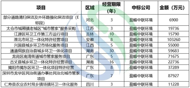(盈峰環(huán)境上半年億級項目中標(biāo)情況,圖源:中國固廢網(wǎng))
