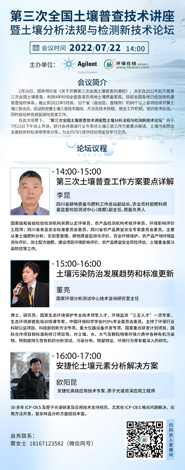 而鑒于我國土壤污染治理行業(yè)起步晚,技術(shù)門檻高,環(huán)保在線特聯(lián)合安捷倫于7月22日舉行“第三次全國土壤普查技術(shù)講座暨土壤分析法規(guī)與檢測(cè)新技術(shù)論壇”,邀請(qǐng)行業(yè)專家就土壤三普工作方案要點(diǎn)解讀、土壤污染防治發(fā)展趨勢(shì)和標(biāo)準(zhǔn)等帶來分享。