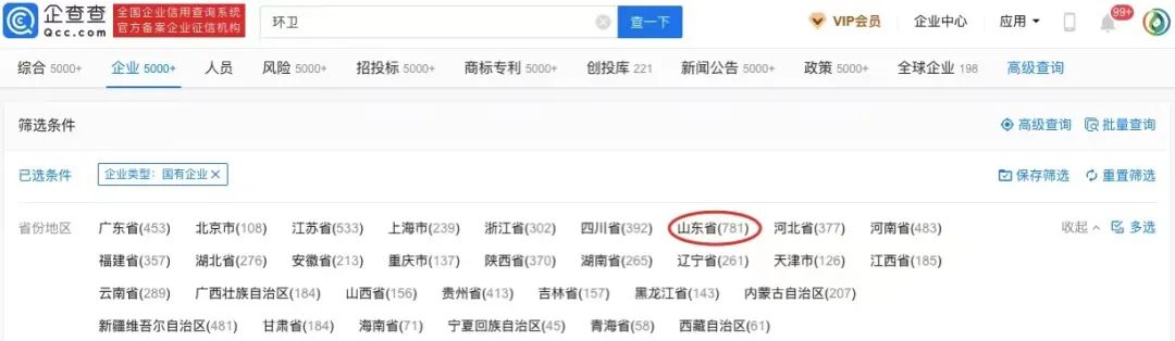 仍然通過企查查查詢“環(huán)衛(wèi)”,可以得到字號(hào)或經(jīng)營(yíng)范圍內(nèi)包含“環(huán)衛(wèi)”或“環(huán)境衛(wèi)生”的企業(yè)總量,全國(guó)共計(jì)761712家,其中性質(zhì)為“國(guó)有企業(yè)”的僅8307家,占企業(yè)總量的1.09%。