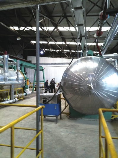 進(jìn)入廠區(qū),現(xiàn)代化的廠房、辦公樓和景觀綠化,似乎和餐廚垃圾處理工廠不相符。更讓人意外的是,從設(shè)有辦公、實(shí)驗(yàn)、生產(chǎn)控制中心、會(huì)議室、生產(chǎn)流程演示、產(chǎn)品成列等功能的現(xiàn)代化辦公樓出來(lái)后,走進(jìn)生產(chǎn)車間,除了可見(jiàn)4個(gè)大型餐廚垃圾喂料口外(即餐廚垃圾運(yùn)輸車傾倒口),全是大型箱體、罐體,以及各種粗細(xì)的管子相連,一道道工序?qū)崿F(xiàn)了自動(dòng)化,看不見(jiàn)一點(diǎn)餐廚垃圾,這里像一座現(xiàn)代化的啤酒車間。“完全實(shí)現(xiàn)了自動(dòng)化?!?/p>