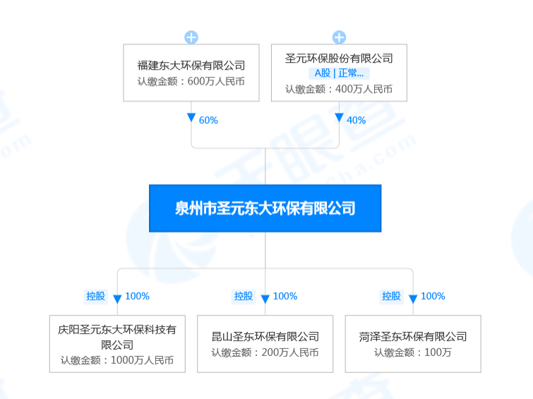 天眼查顯示,中標(biāo)供應(yīng)商泉州市圣元東大環(huán)保有限公司成立于2016年4月,由福建東大環(huán)保有限公司和圣元環(huán)保股份有限公司合資創(chuàng)辦,其中東大環(huán)保持股60%,圣元環(huán)保(A股主板上市公司)持股40%。