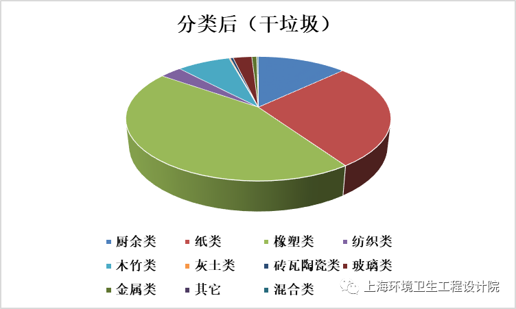 《條例》實施后,全市干垃圾物理組成以橡塑類(污損的塑料袋、塑料制品、一次性塑料飯盒等)為主,其次是紙類(污染紙張、餐巾紙、衛(wèi)生間用紙、濕巾、紙尿褲等)和少量廚余類,分別占44.36%、27.46%、12.98%。根據(jù)《生活垃圾采樣和分析方法》(CJ/T 313-2009)規(guī)定,生活垃圾中“廚余類”指各種動、植物類食品(包括各種水果)的殘余物,濕垃圾中廚余類含量達到99%。
