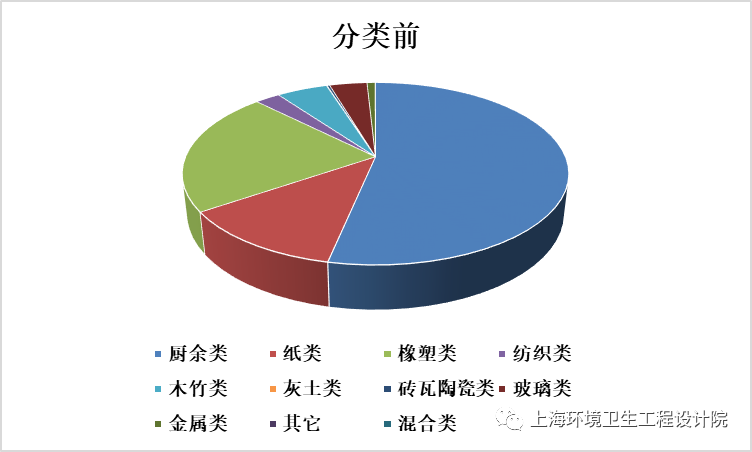 《條例》實施前,生活垃圾物理組成以廚余類為主,其次是橡塑類、紙類,其含量分別占垃圾總量的53.31%、22.06%、12.17%,并含有少量木竹類、紡織類、玻璃類等成分。