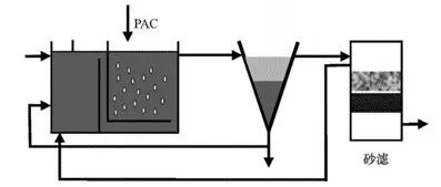 • 方式一工藝最簡單,投資費用最低,后續(xù)濾池的設(shè)置可以保證出水水質(zhì),降低 PAC 流失,但這種工藝的 PAC投加量最高;