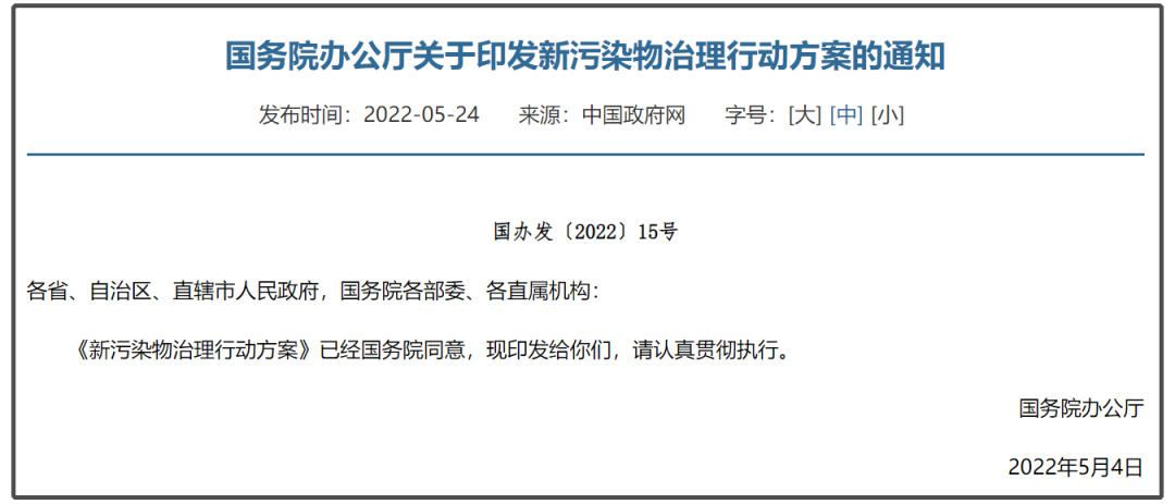 2022年5月,國務(wù)院辦公廳印發(fā)《新污染物治理行動方案》,對新污染物治理工作進行全面部署