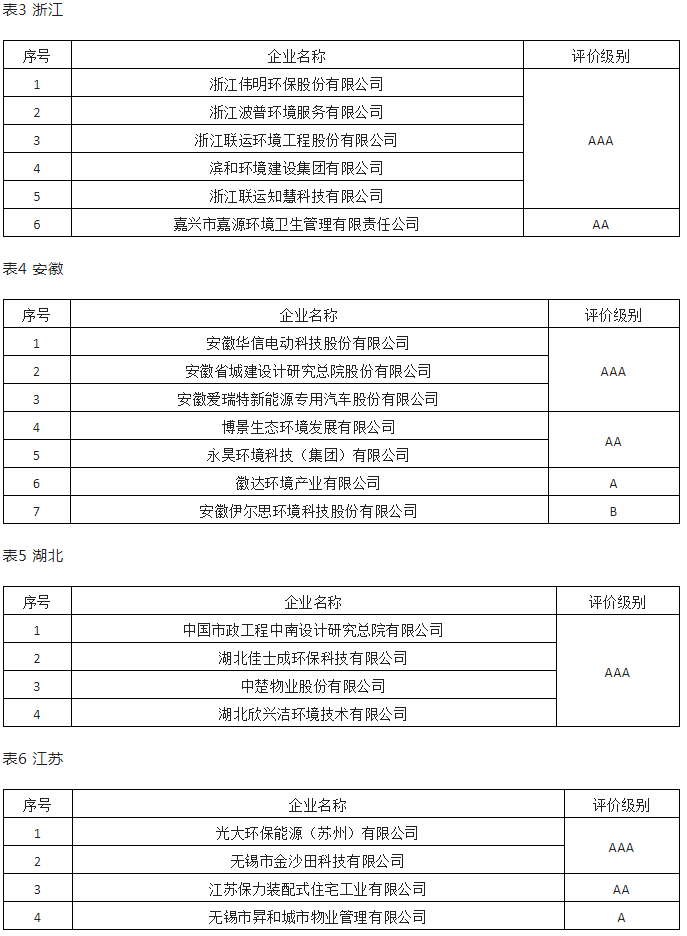 從企業(yè)質(zhì)量來看,還是浙江企業(yè)更強(qiáng),浙江擁有上市公司、垃圾焚燒領(lǐng)軍企業(yè)之一的偉明環(huán)保,以及垃圾分類領(lǐng)域排頭兵——聯(lián)運(yùn)環(huán)境,而波普環(huán)境、濱和環(huán)境也在全國范圍內(nèi)具有一定知名度。反映在評(píng)級(jí)上,浙江有五家企業(yè)獲評(píng)AAA級(jí),遙遙領(lǐng)先于其他省份,這也可以算是浙江環(huán)衛(wèi)企業(yè)發(fā)展?fàn)顩r的一個(gè)真實(shí)反映。