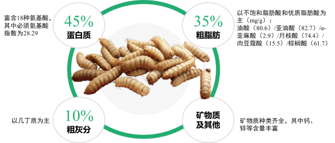 黑水虻是聯(lián)合國糧農(nóng)組織(FAO)指定的可食用資源型昆蟲。黑水虻幼蟲富含活性蛋白、昆蟲脂肪、益生菌、抗菌肽及甲殼素,是各類動(dòng)物的最佳天然保健品,被譽(yù)為“動(dòng)物人參”,可作為動(dòng)物的主食或者飼料的補(bǔ)充,達(dá)到幫助消化、促進(jìn)生長、增強(qiáng)免疫力、使肉質(zhì)鮮美的作用?;钕x使用也可作為飼料的添加劑或者部分替代,例如替代飼料的10%,其成本低廉,但動(dòng)物的成活率、料肉比、肉質(zhì)感等都得到了很大的提高,養(yǎng)殖效益翻倍。