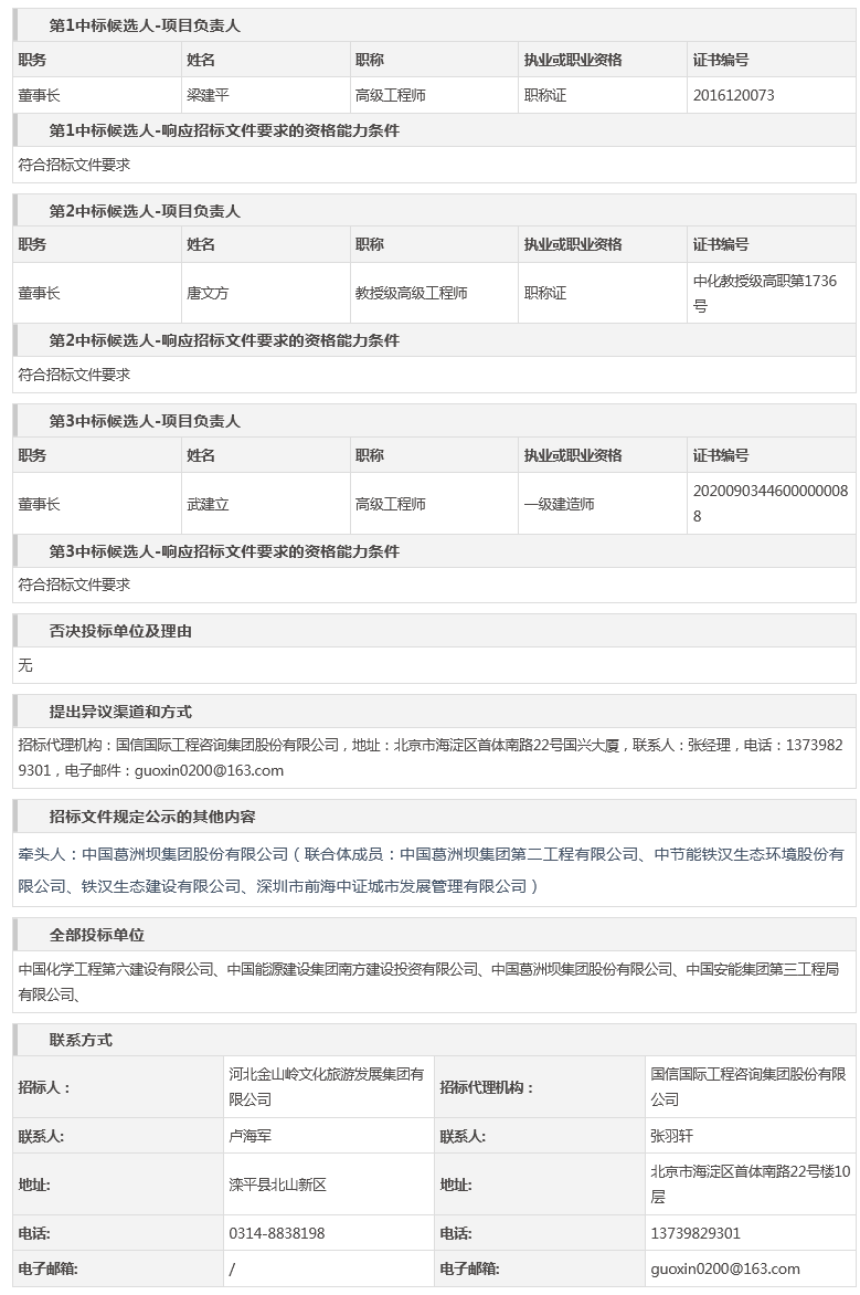 第一名:中國(guó)葛洲壩集團(tuán)股份有限公司第二名:中國(guó)化學(xué)工程第六建設(shè)有限公司第三名:中國(guó)能源建設(shè)集團(tuán)南方建設(shè)投資有限公司