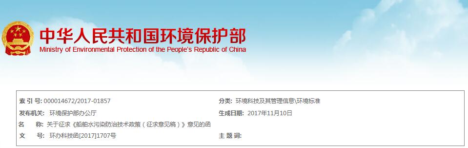 日前,環(huán)保部印發(fā)《船舶水污染防治技術(shù)政策(征求意見稿)》。全文如下: