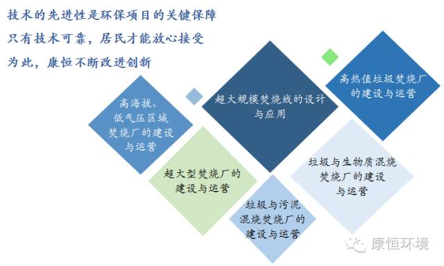 垃圾焚燒技術(shù)的先進性是環(huán)保項目的關(guān)鍵保障,只有技術(shù)可靠,居民才能放心接受,為此,康恒環(huán)境選擇站在巨人的肩膀上,不斷創(chuàng)新??岛悱h(huán)境在全面引進和消化世界領(lǐng)先焚燒技術(shù)的同時,根據(jù)國情進一步改進和創(chuàng)新,使其更加適應國內(nèi)生活垃圾的綜合治理。