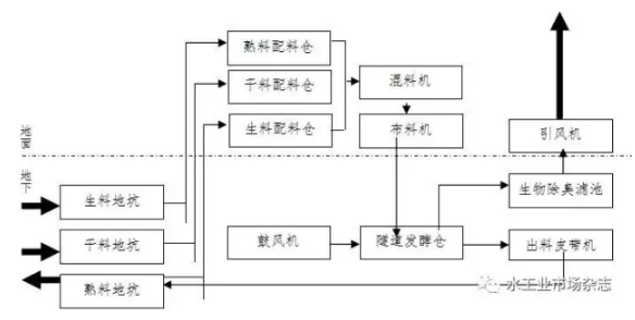 圖4 地下式高溫好氧發(fā)酵系統(tǒng)流程示意圖
