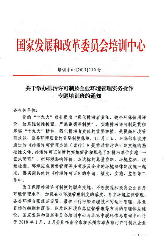 國家發(fā)改委培訓中心主辦:關(guān)于排污許可制+土壤污染防治等專題培訓