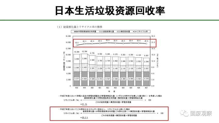 我們看下面這個日本的生活垃圾資源回收率計(jì)算公式,日本也才21%,我們能做到35%嗎?